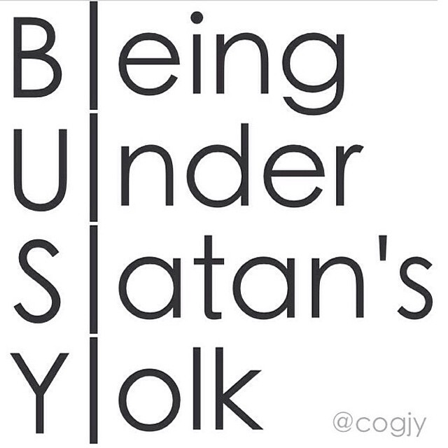 God wants you to have life and be busy about His work, Satan on the other hand wants you so far out of God’s will that he will give you everything you want and then drop you like a bad habit..don’t get caught up in being so “busy” that you miss what God has for you and your future in Him.